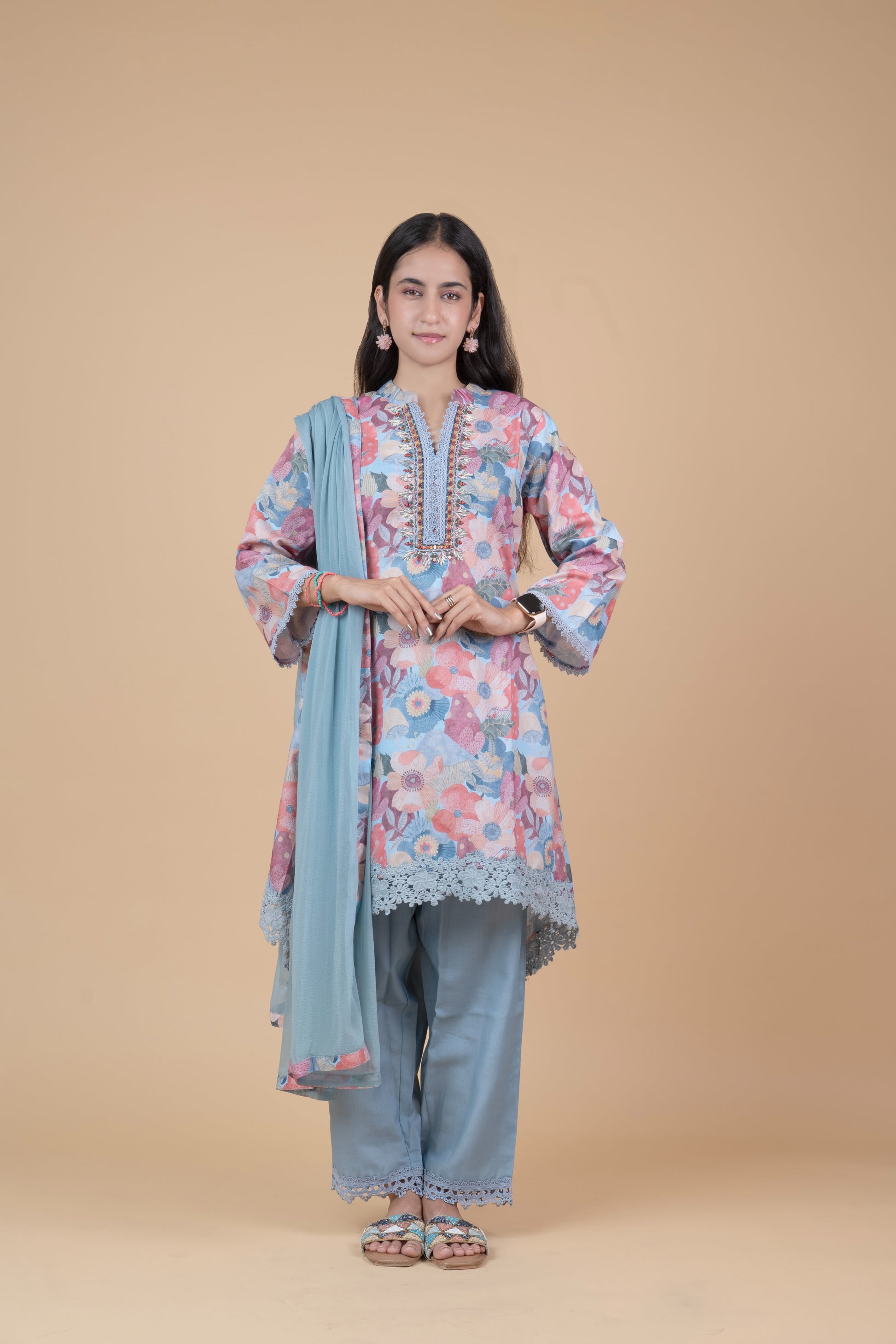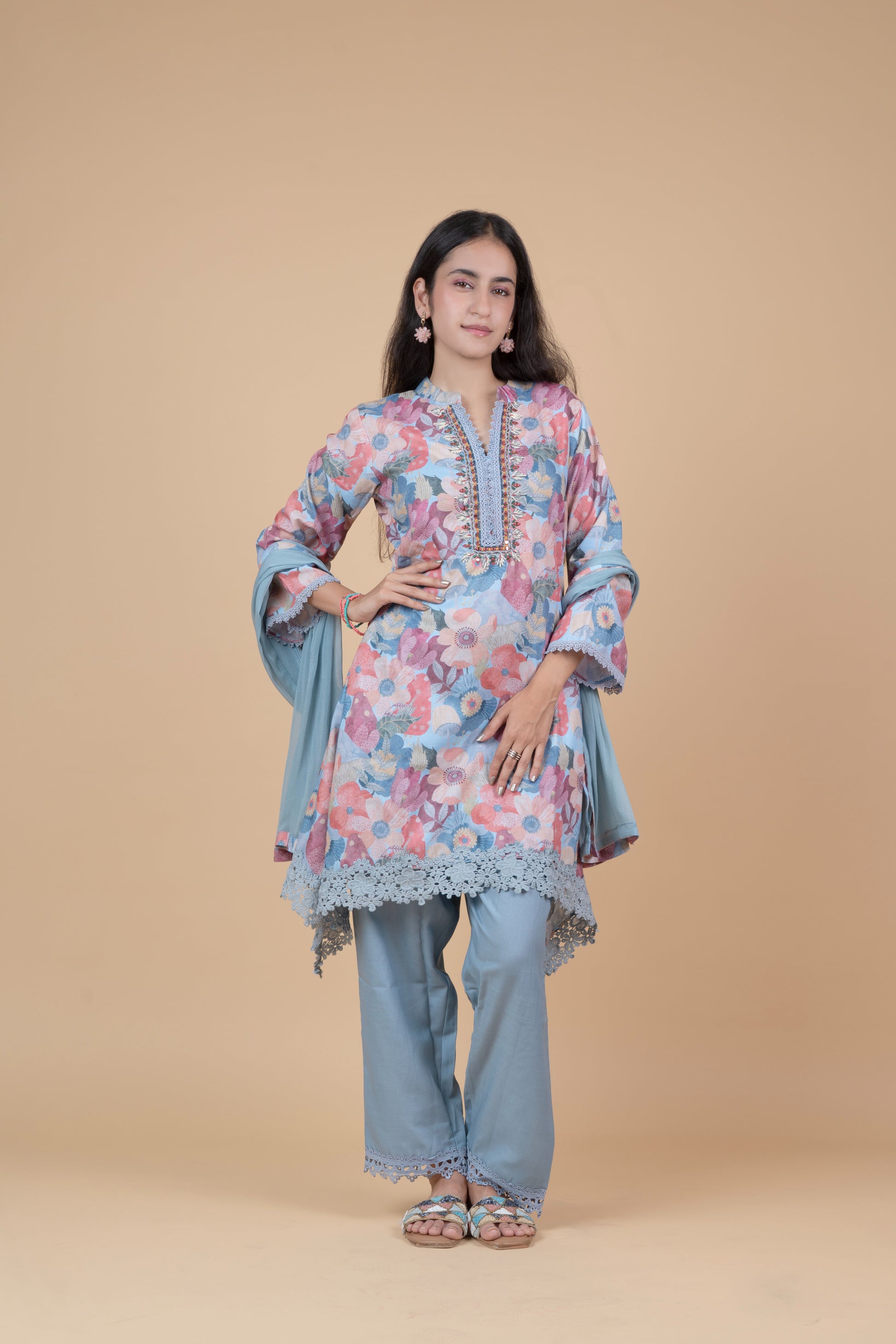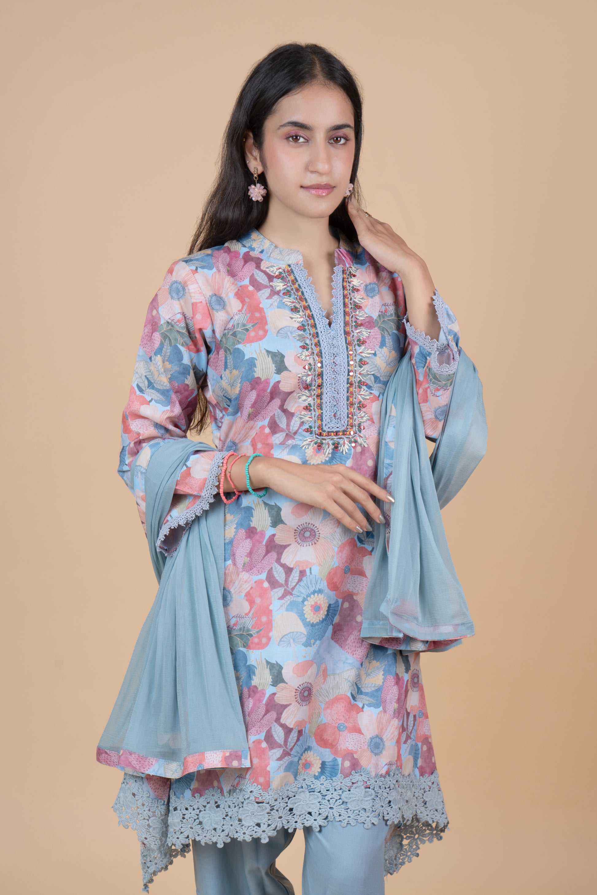 Pastel Floral Printed Kurta Set