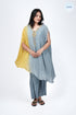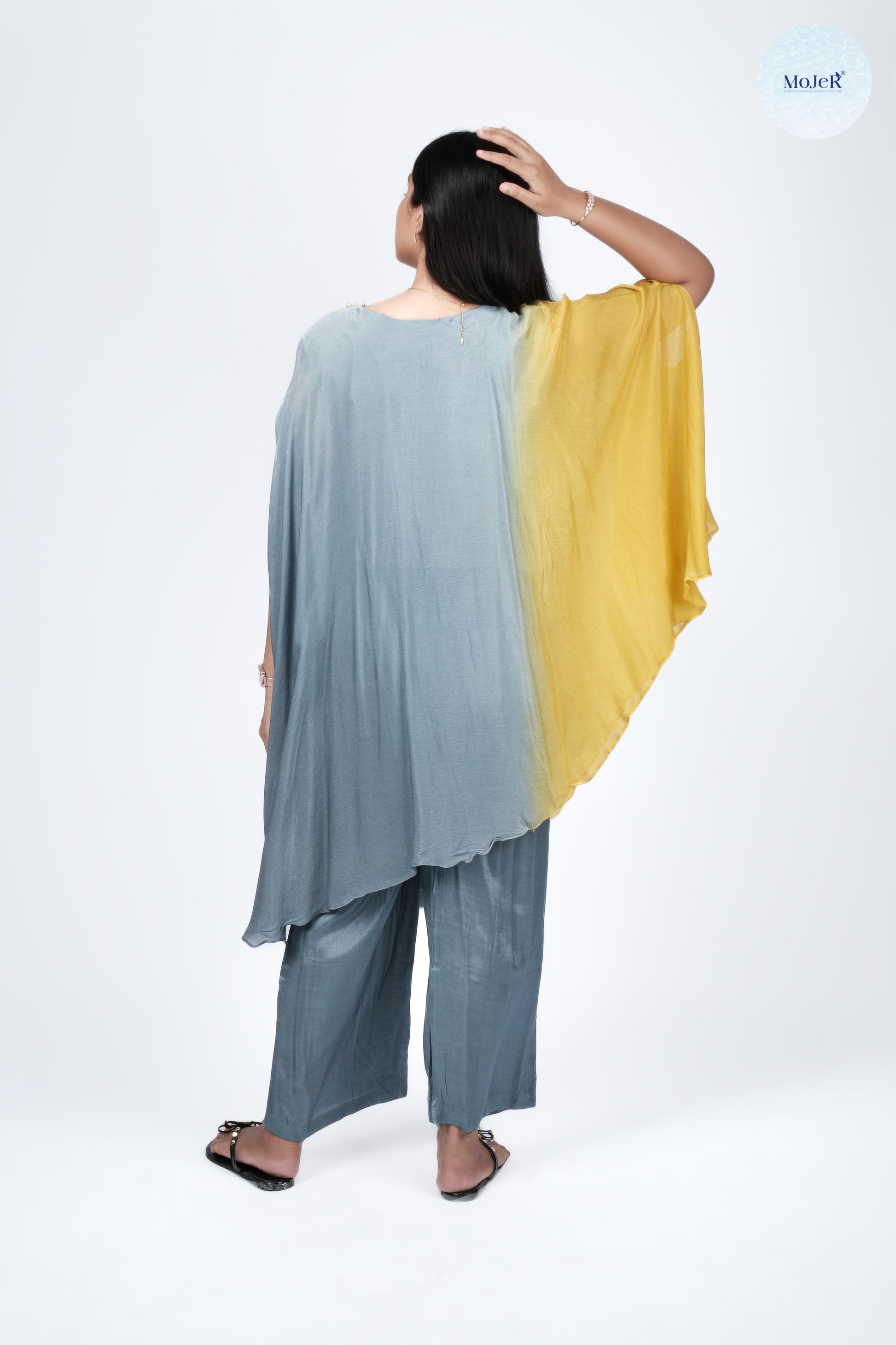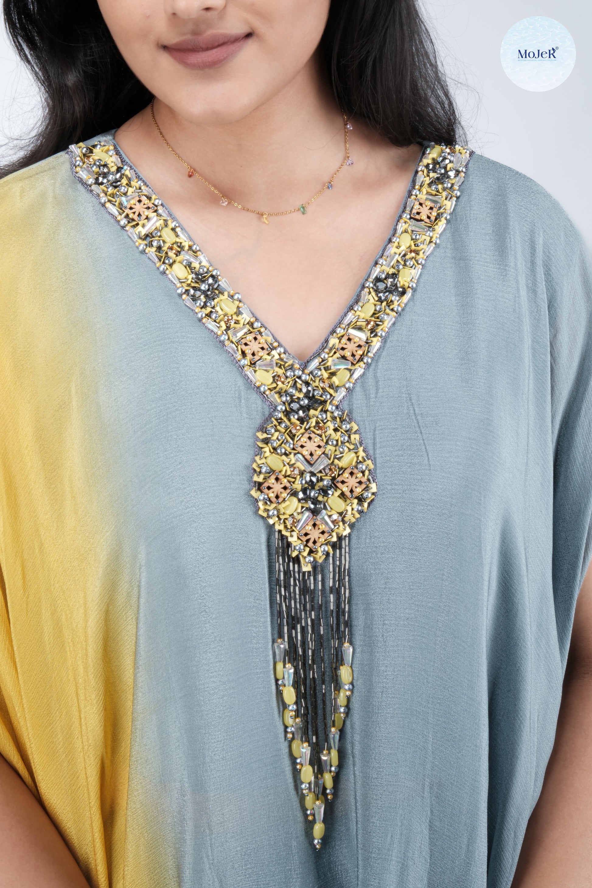 Yellow Grey Ombre Kaftan Set with Embellished Neckline