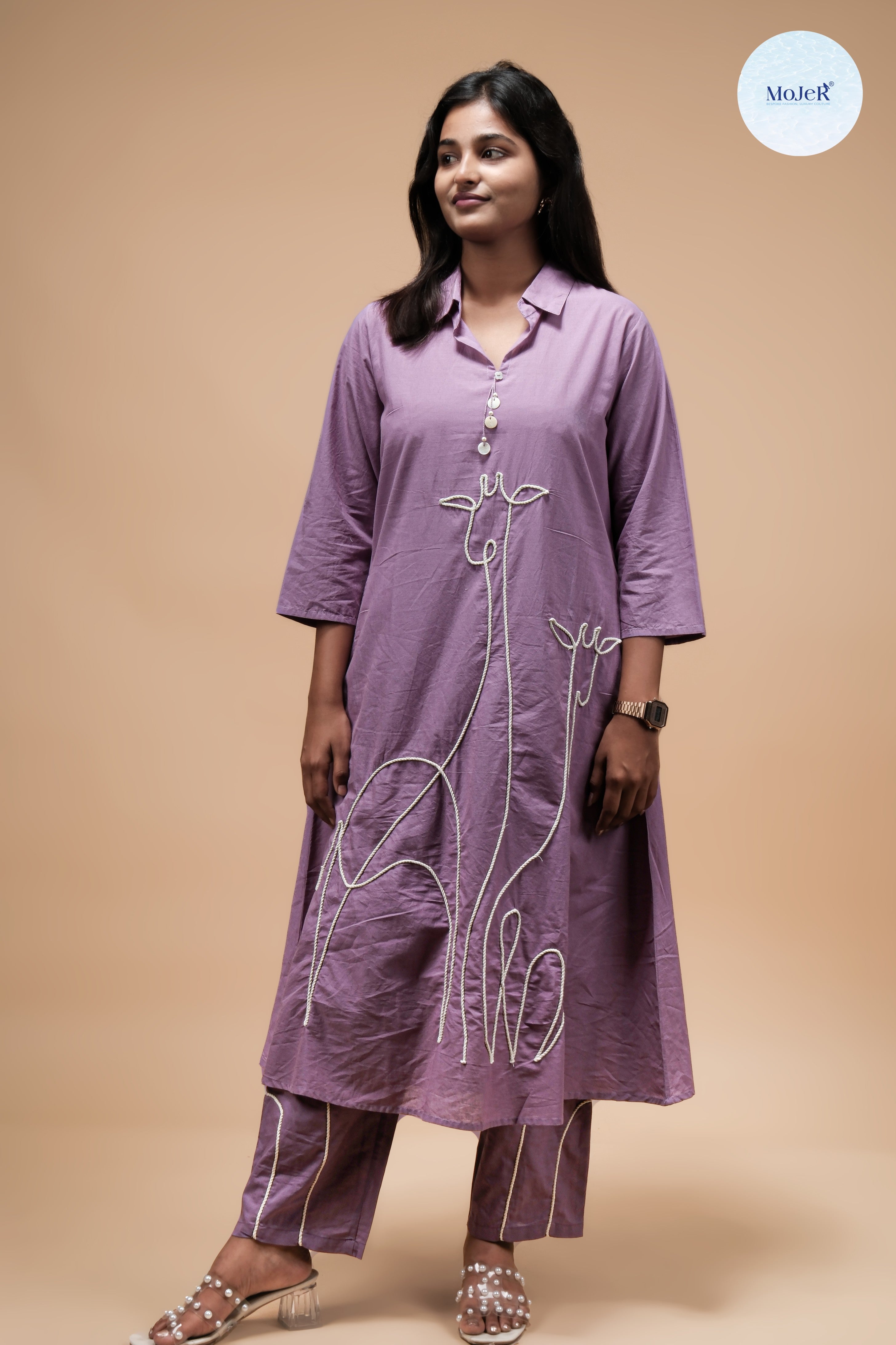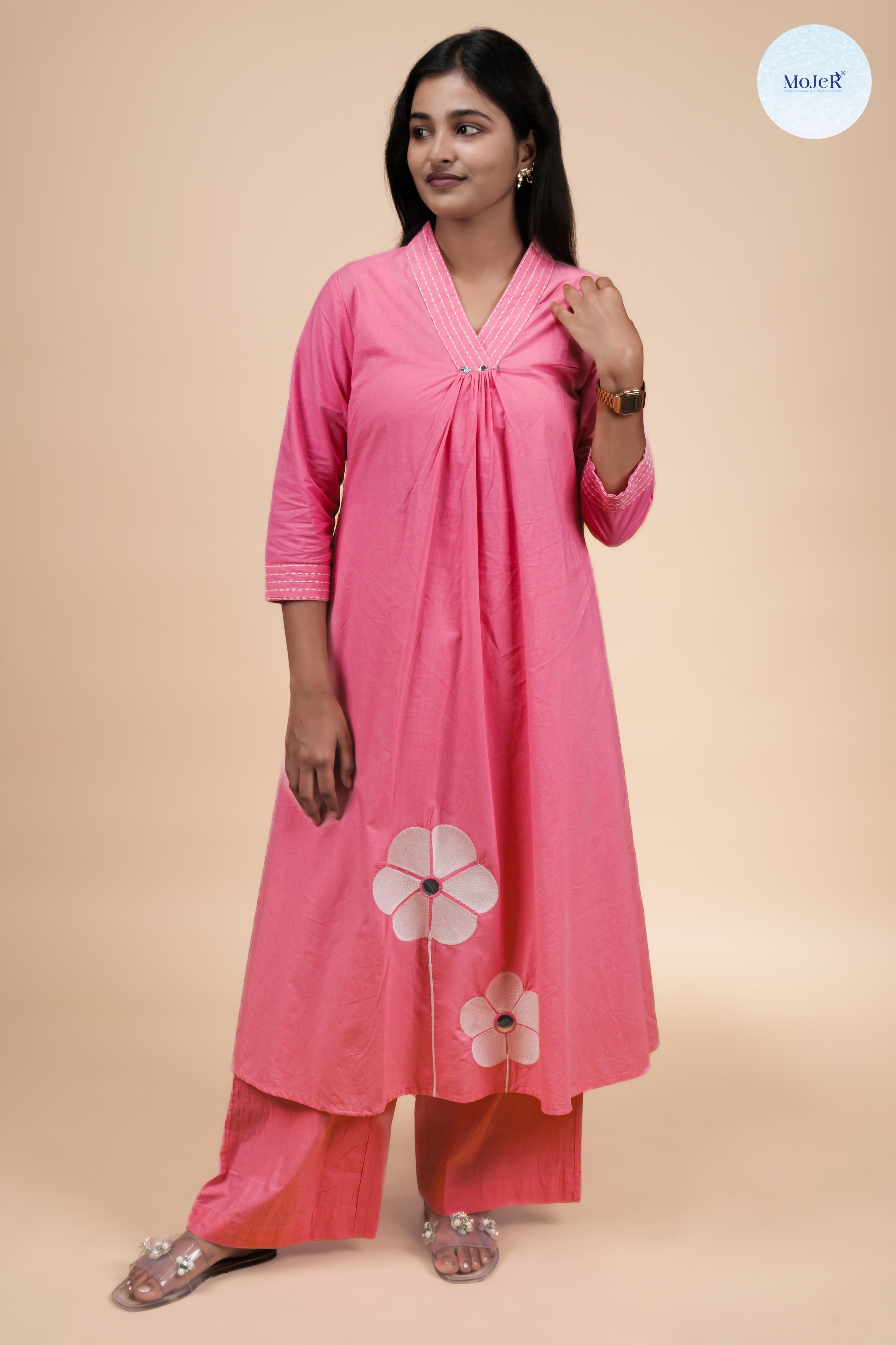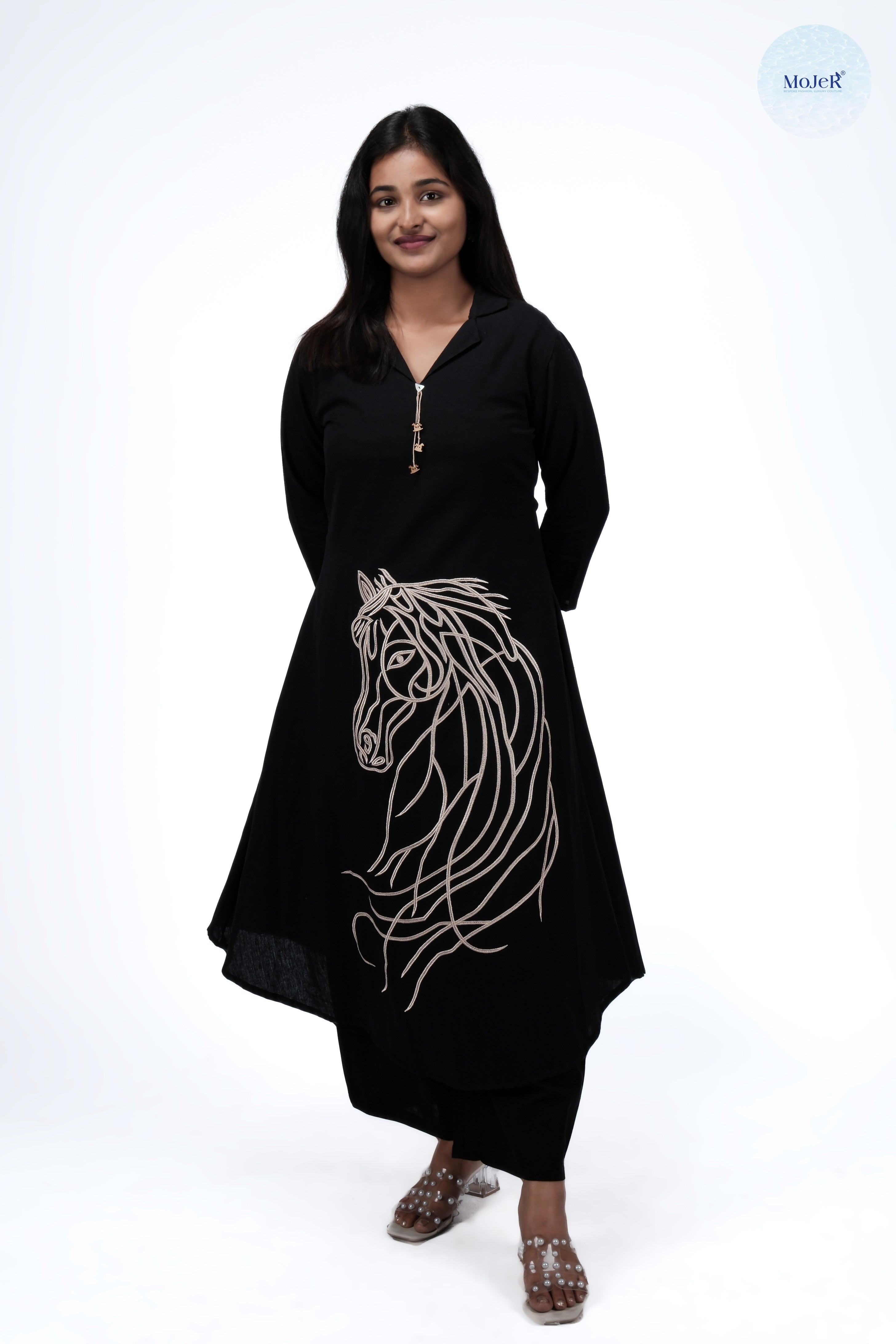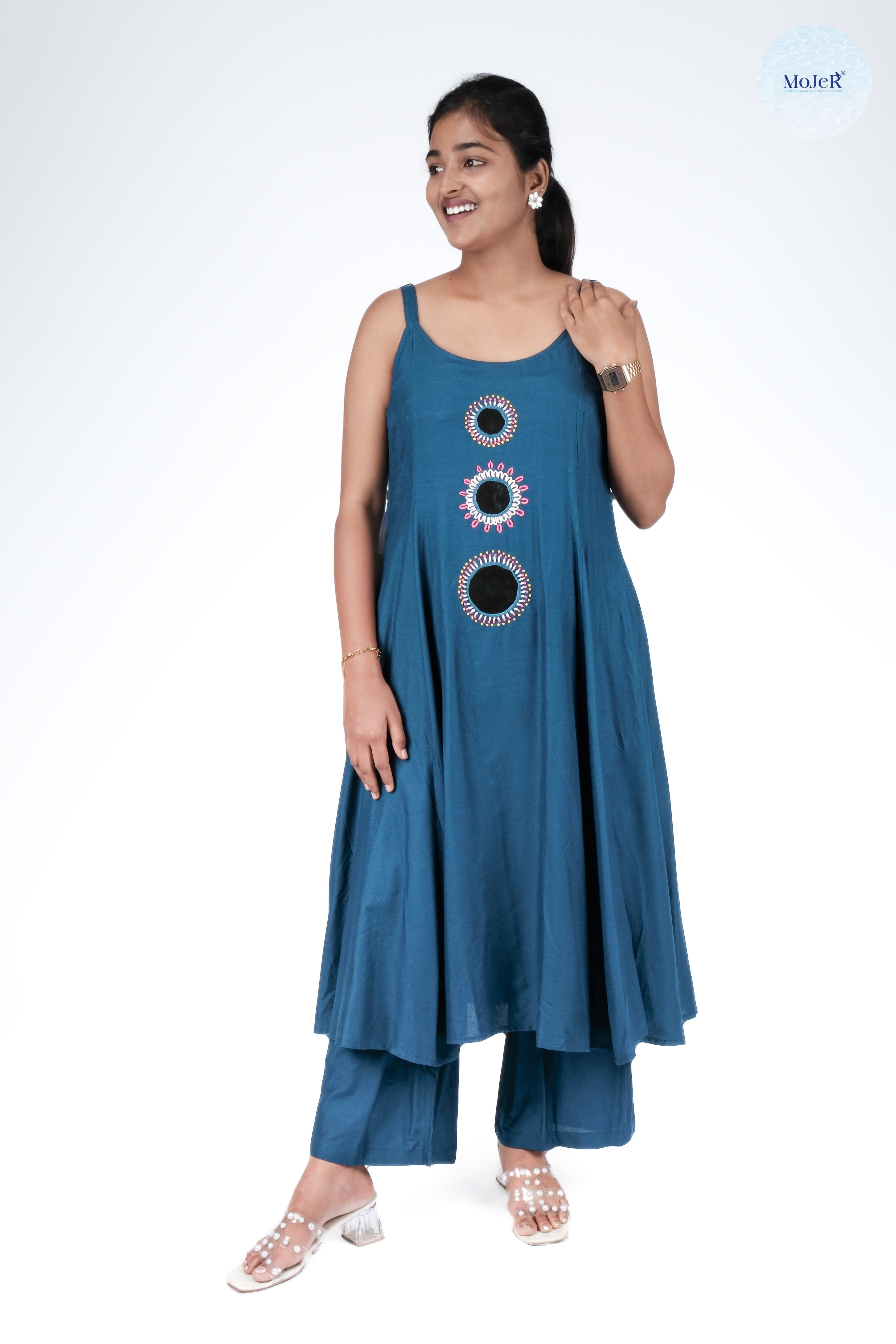 Teal Blue A-Line Mirror Work Kurti with Pockets