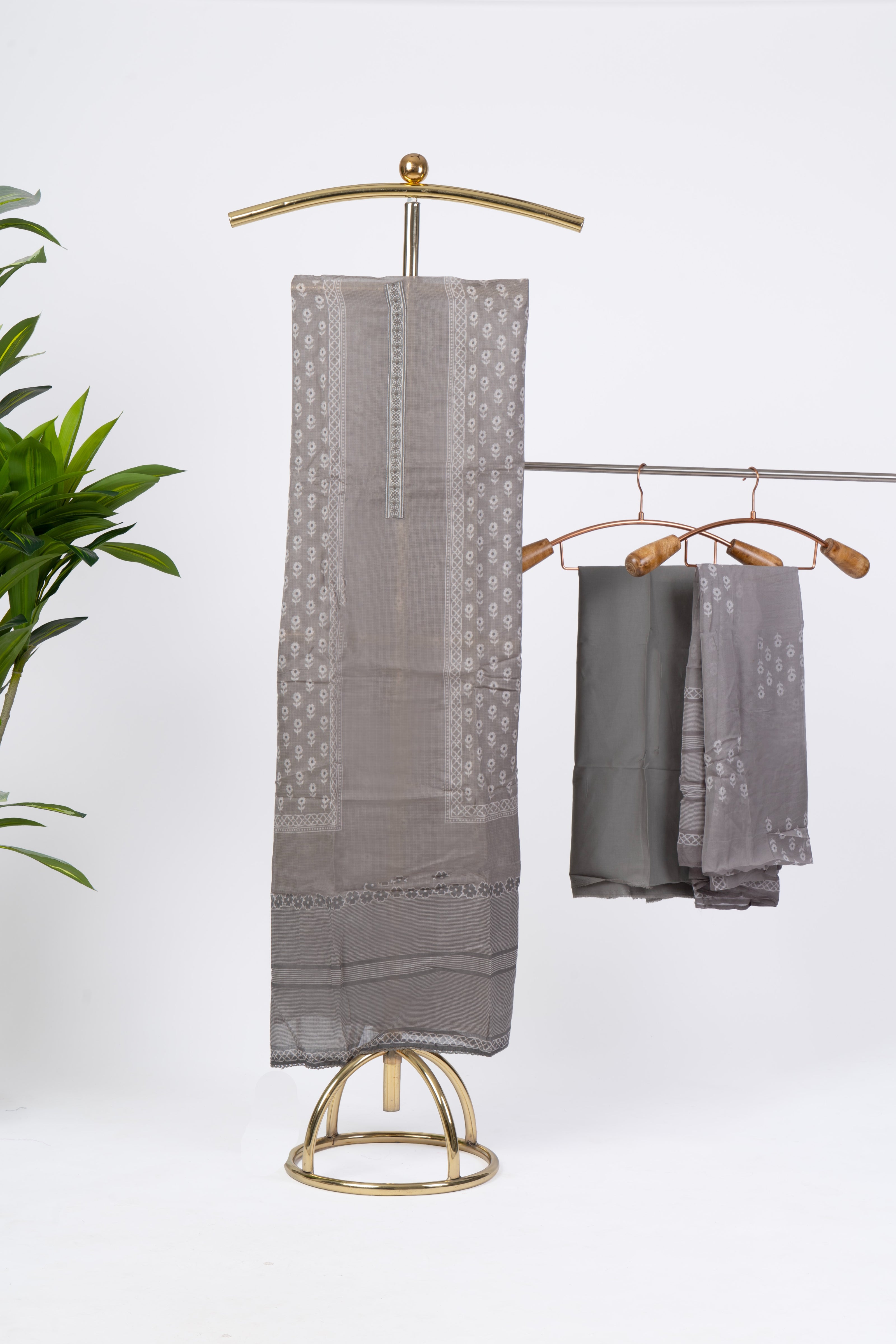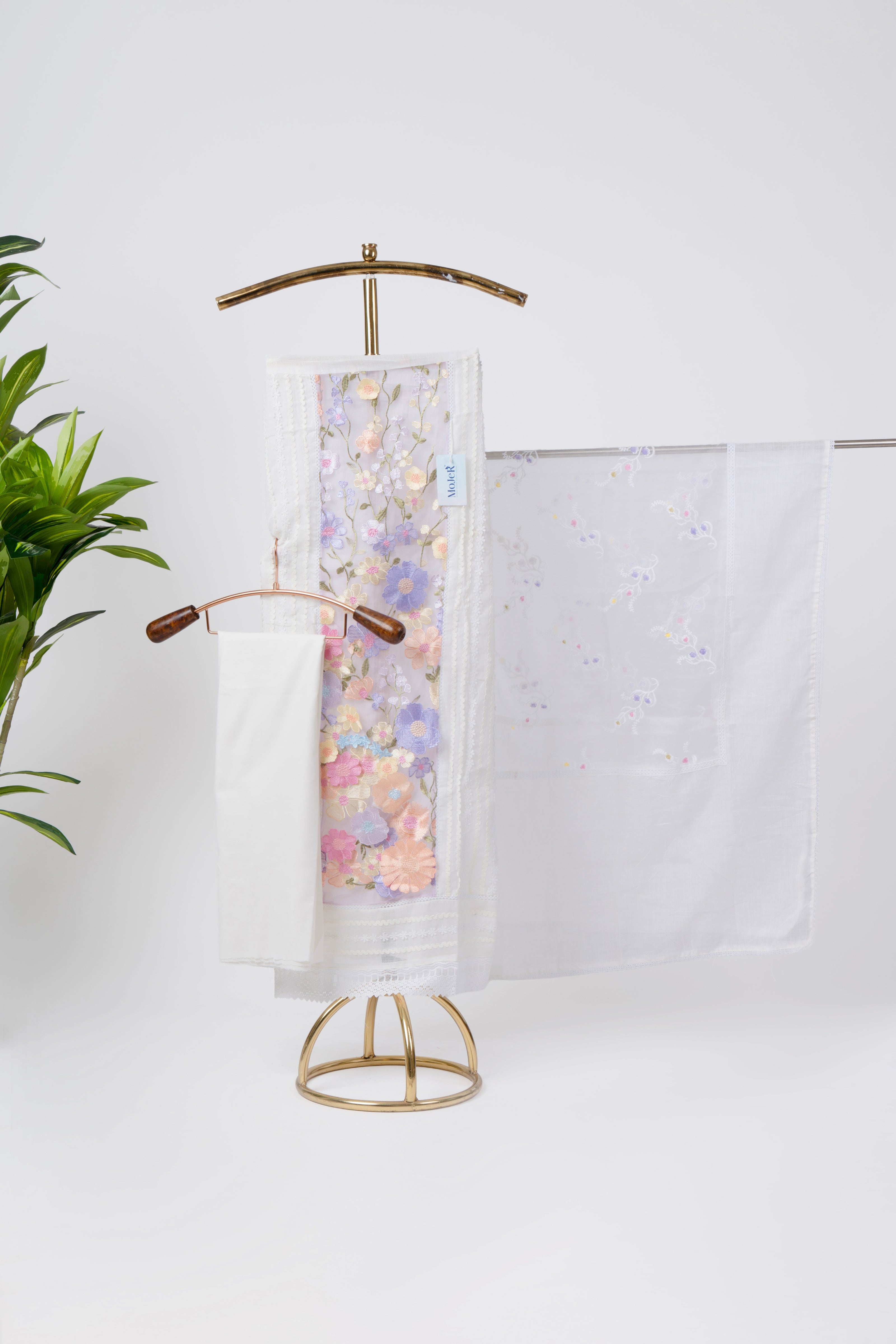 Pink Floral Cutwork Cotton 3PC Unstitched Suit
