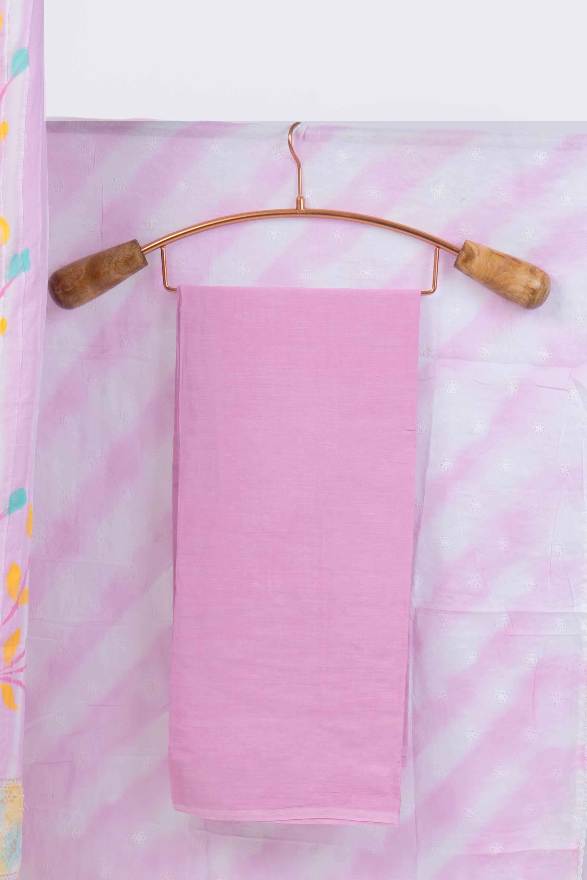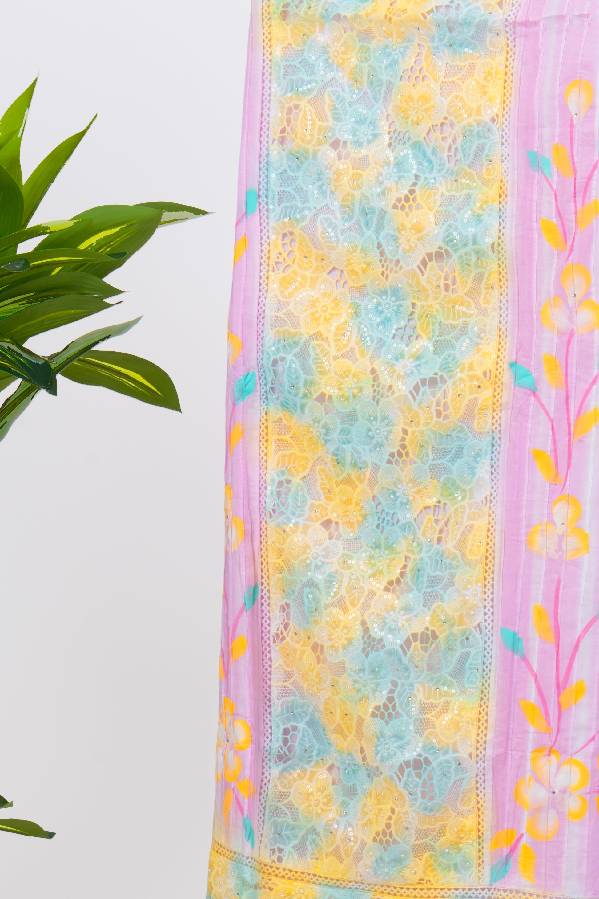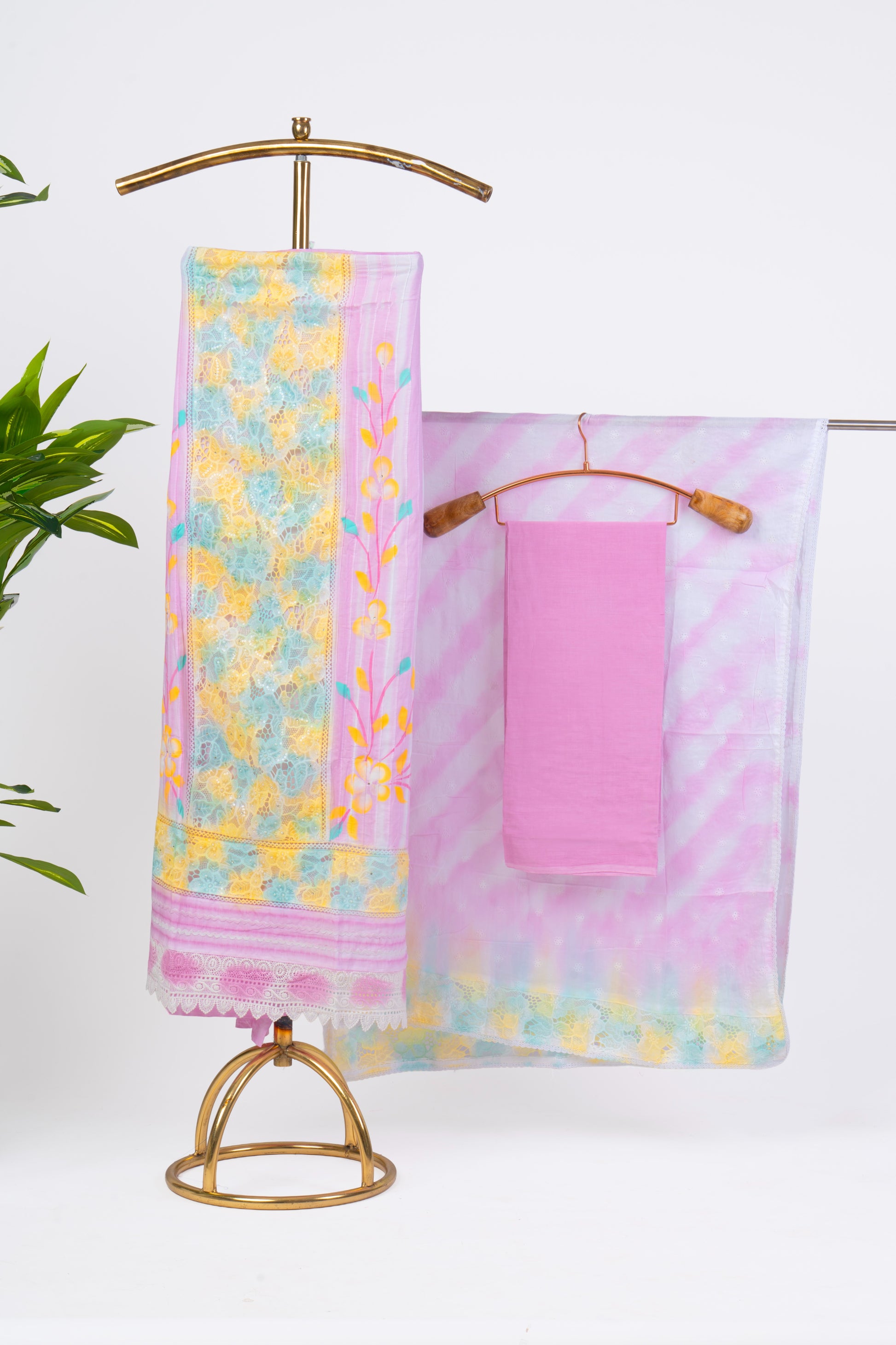Hand Brush-Painted Pink Suit Set with Intricate Cutwork & Crochet Hemline