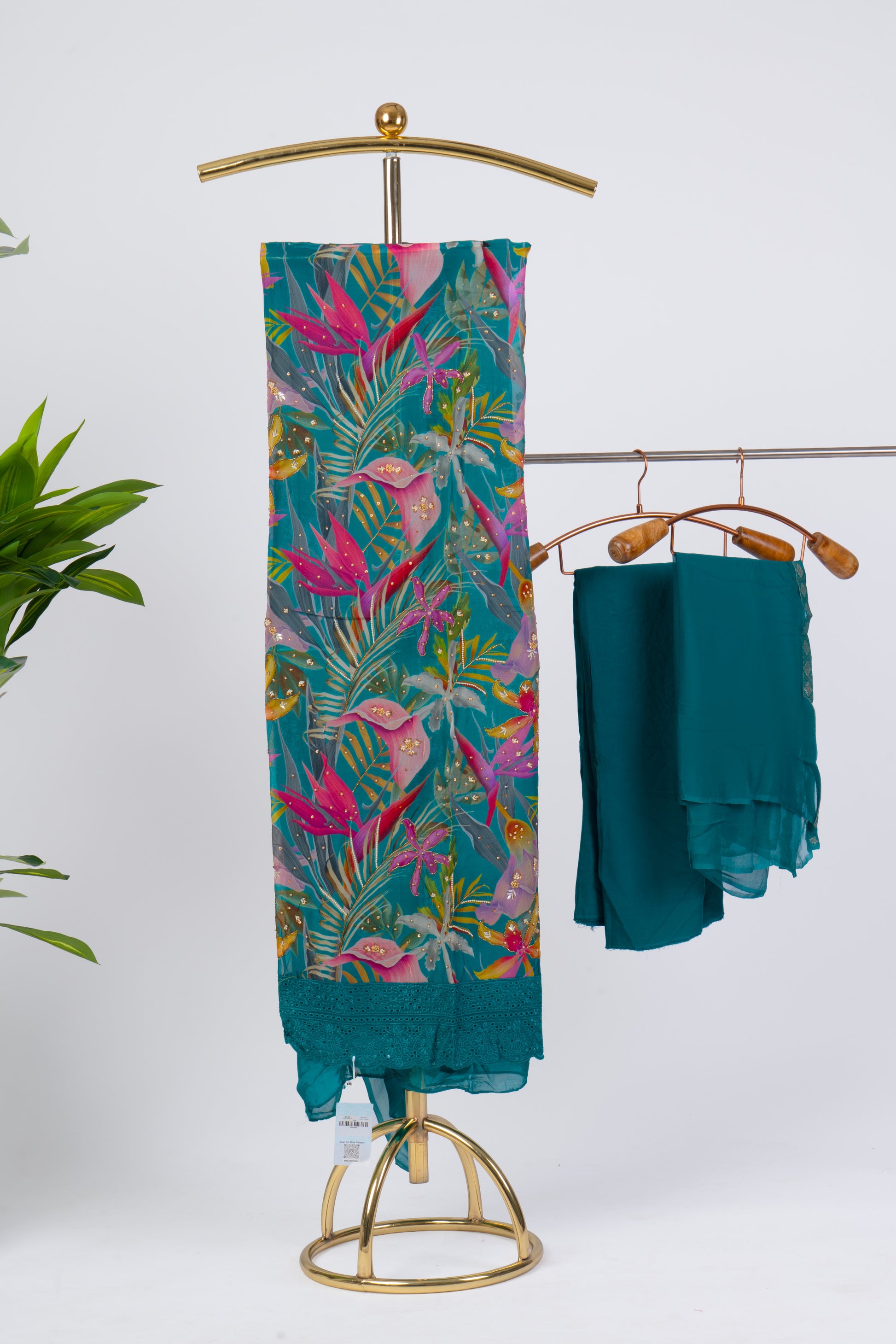 Floral Blue Digital Print Suit Set with Lace Border
