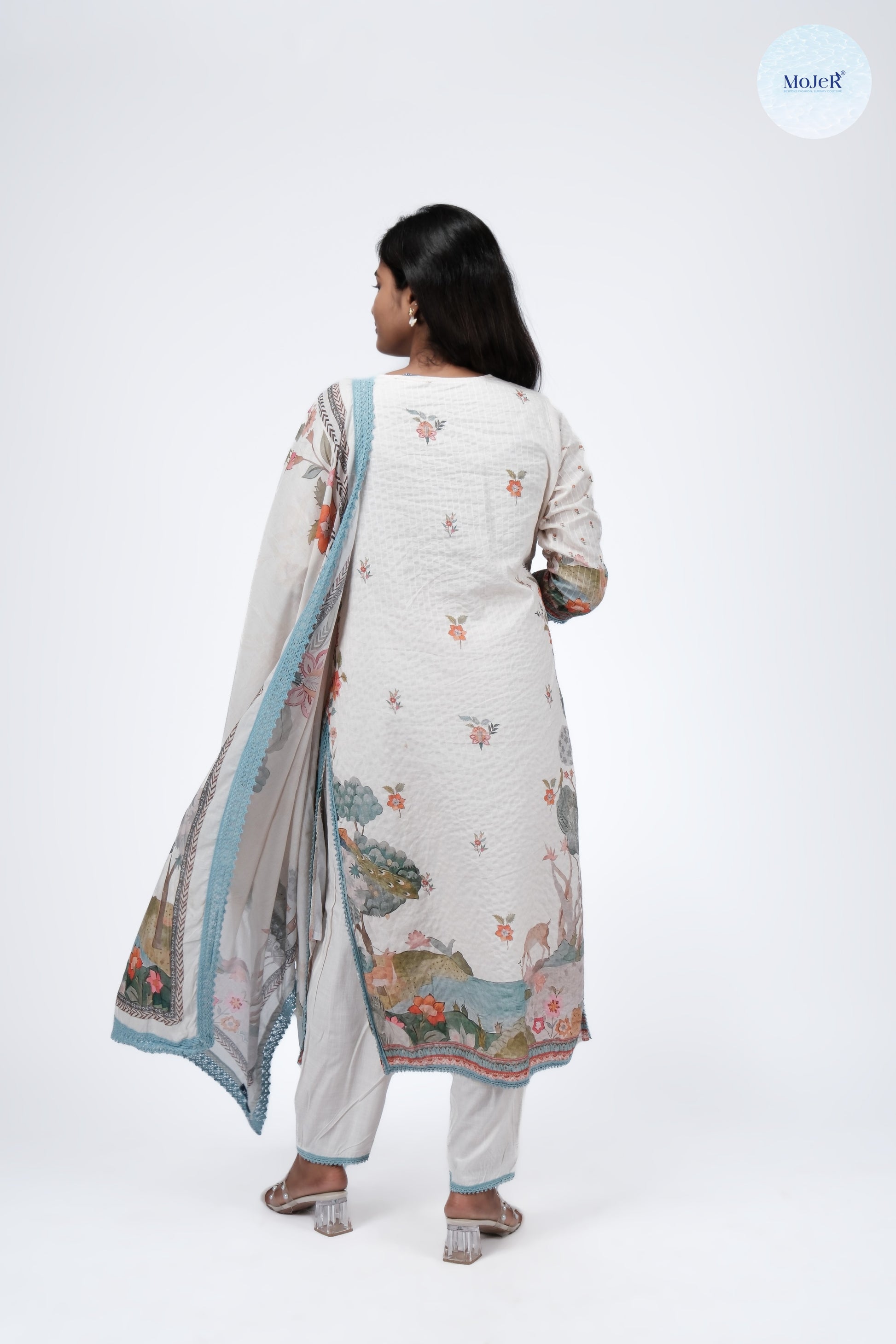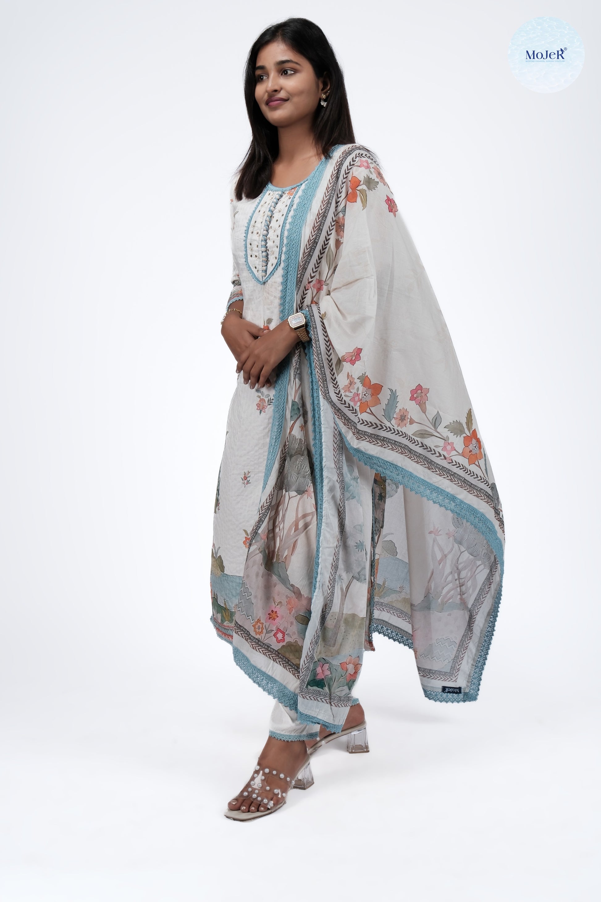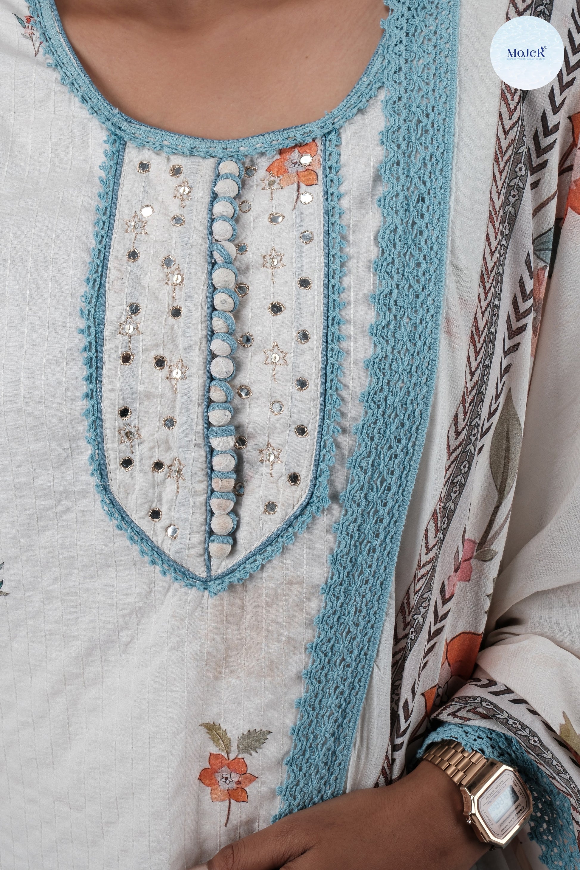 Ivory Blue Artistic Embroidered Kurta Set with Printed Dupatta