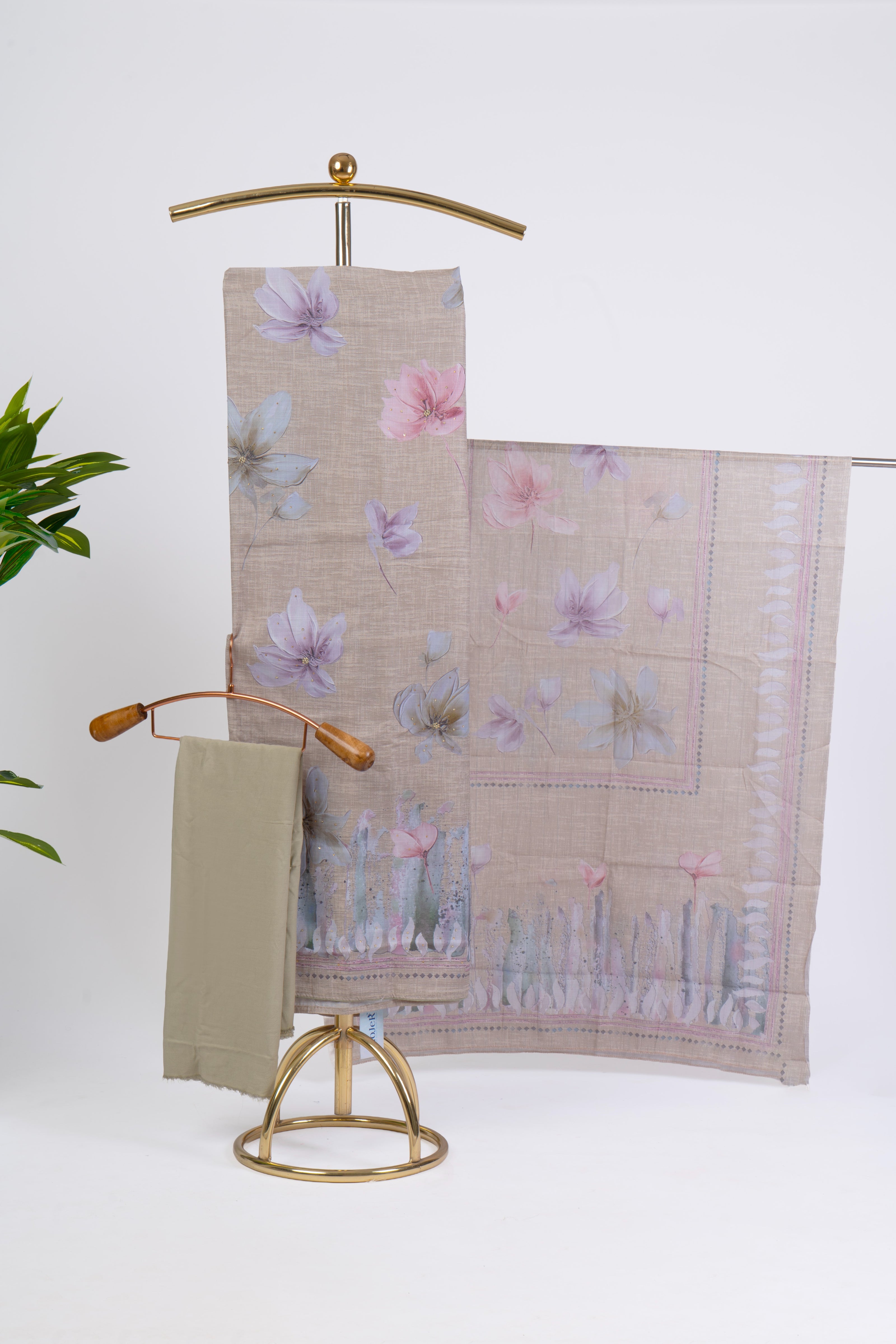 Light Brown Linen Cotton Pastel Floral Suit Set